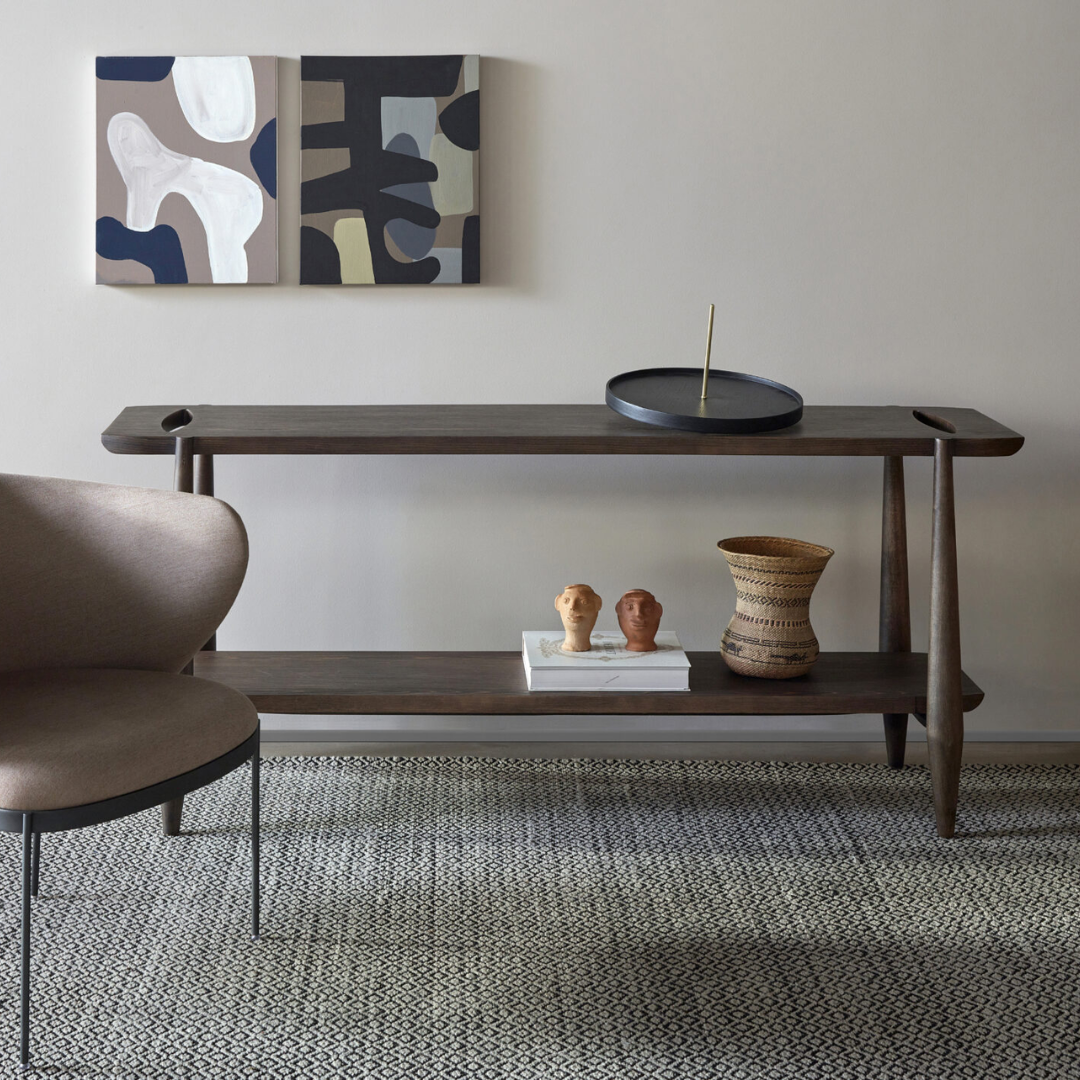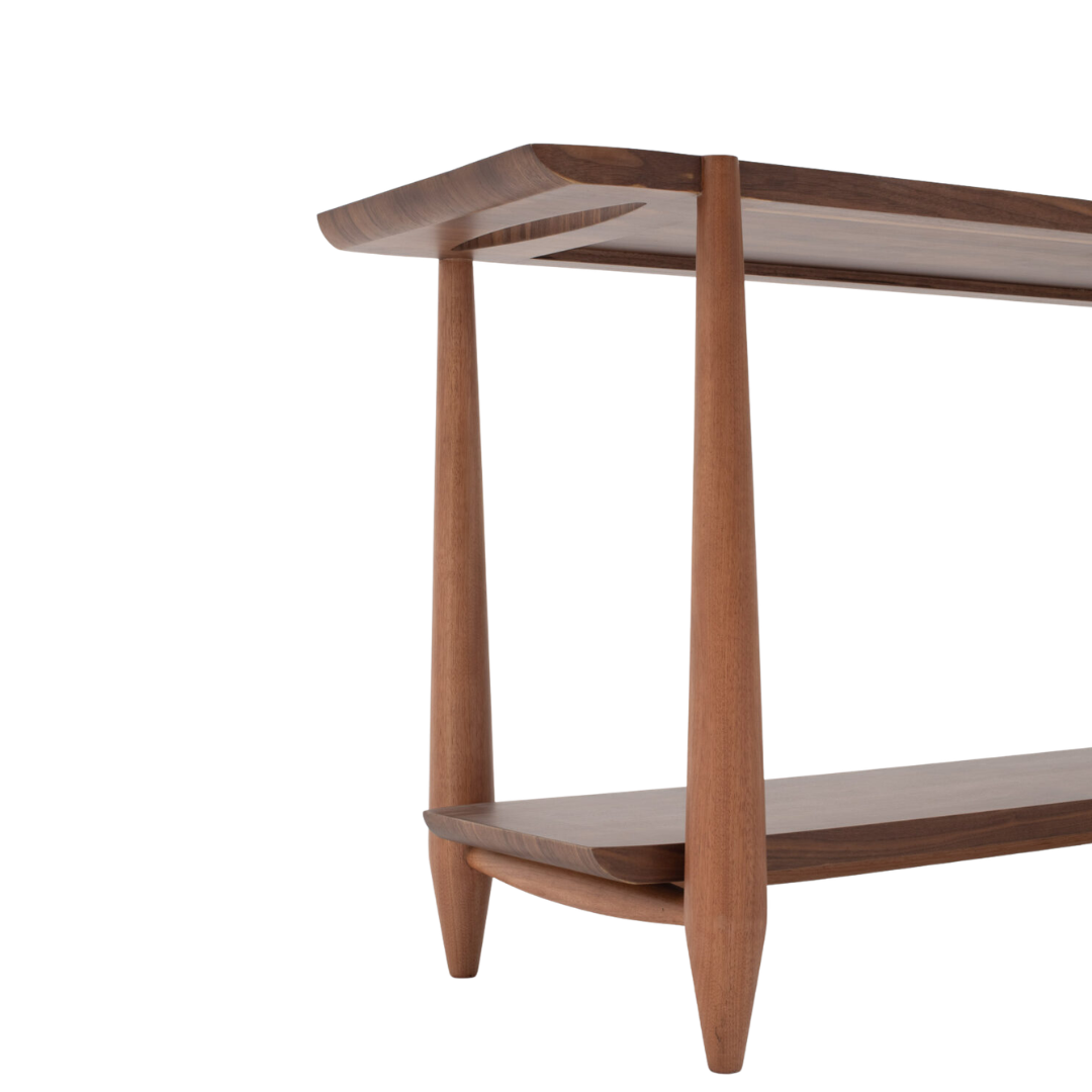 Versão aparador do buffet Aero, esta peça se inspirou na estética do movimento Branco & Preto, ícone do modernismo brasileiro. Com estrutura delgada em madeira maciça torneada, possui dois tampos que podem receber objetos, obras de arte e plantas. Ideal para quem não abre mão de um design diferenciado, o aparador Aero pode ser usado no hall, na sala de jantar, atrás do sofá e também em espaços comerciais.