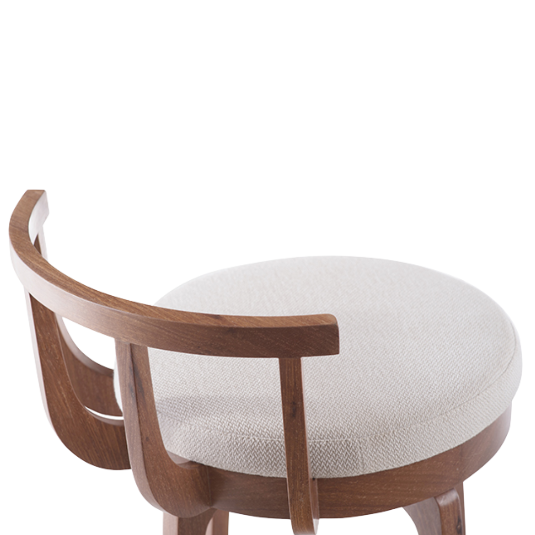 Prática e de fácil manutenção, a banqueta Giratória Marina é perfeita para a bancada da cozinha ou da varanda gourmet. Seu design é inspirado nas estruturas das embarcações, e as formas orgânicas que orientam o projeto também aparecem nos demais móveis da mesma família. Com curvas marcantes e a madeira maciça como protagonista, a peça é ideal para composições de estilo mais casual.