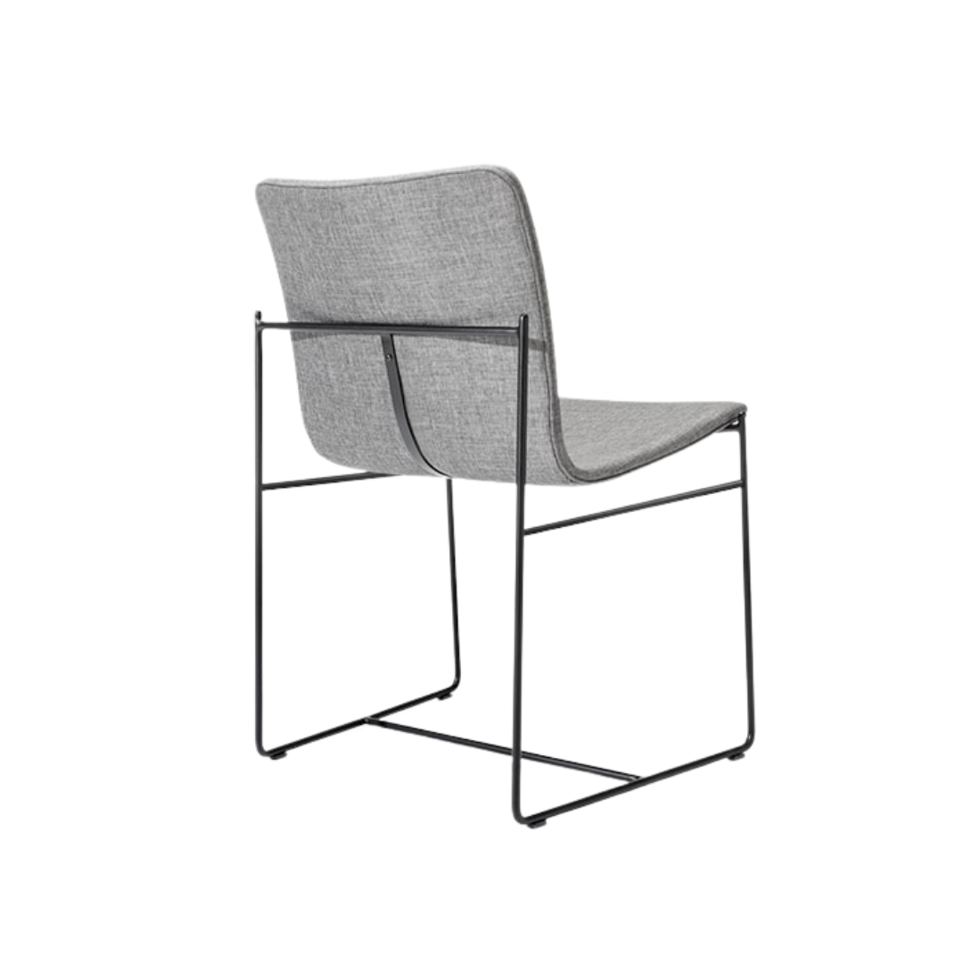 Curvas, espessuras e a mistura de materiais mantém uma linguagem harmoniosa e discreta criada pelo contraste entre elementos táteis aquecidos e o contorno metálico frio, preciso e contínuo.