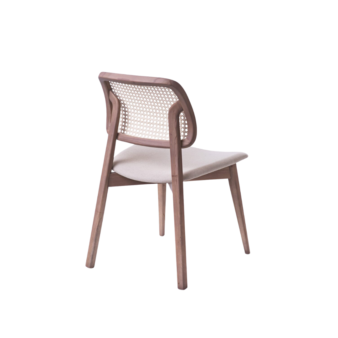 Com a madeira como protagonista, a cadeira Abraço apresenta curvas leves e dinâmicas graças à tecnologia fabril empregada. Seu traço mais marcante são os pés posteriores, que também sustentam o encosto, criando a curva sinuosa que inspirou o nome da peça por lembrar o gesto de um abraço. Com ótima ergonomia e forte personalidade, ela ganha delicadeza com o encosto em palhinha. Ideal para a sala de jantar, também funciona bem em varandas, quartos, escritórios e cozinhas.