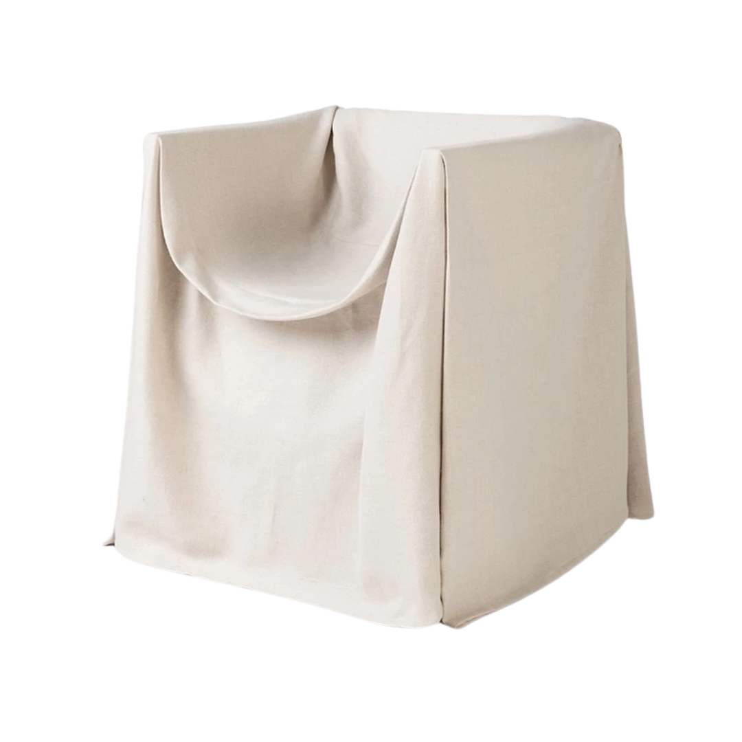 “Capa” é uma reinterpretação da cadeira tradicional de capa de linho. A forma sugere que um tecido foi despretensiosamente jogado sobre uma estrutura de madeira. Uma peça que tem como objetivo negar o desenho para celebrar a casualidade e a improvisação.