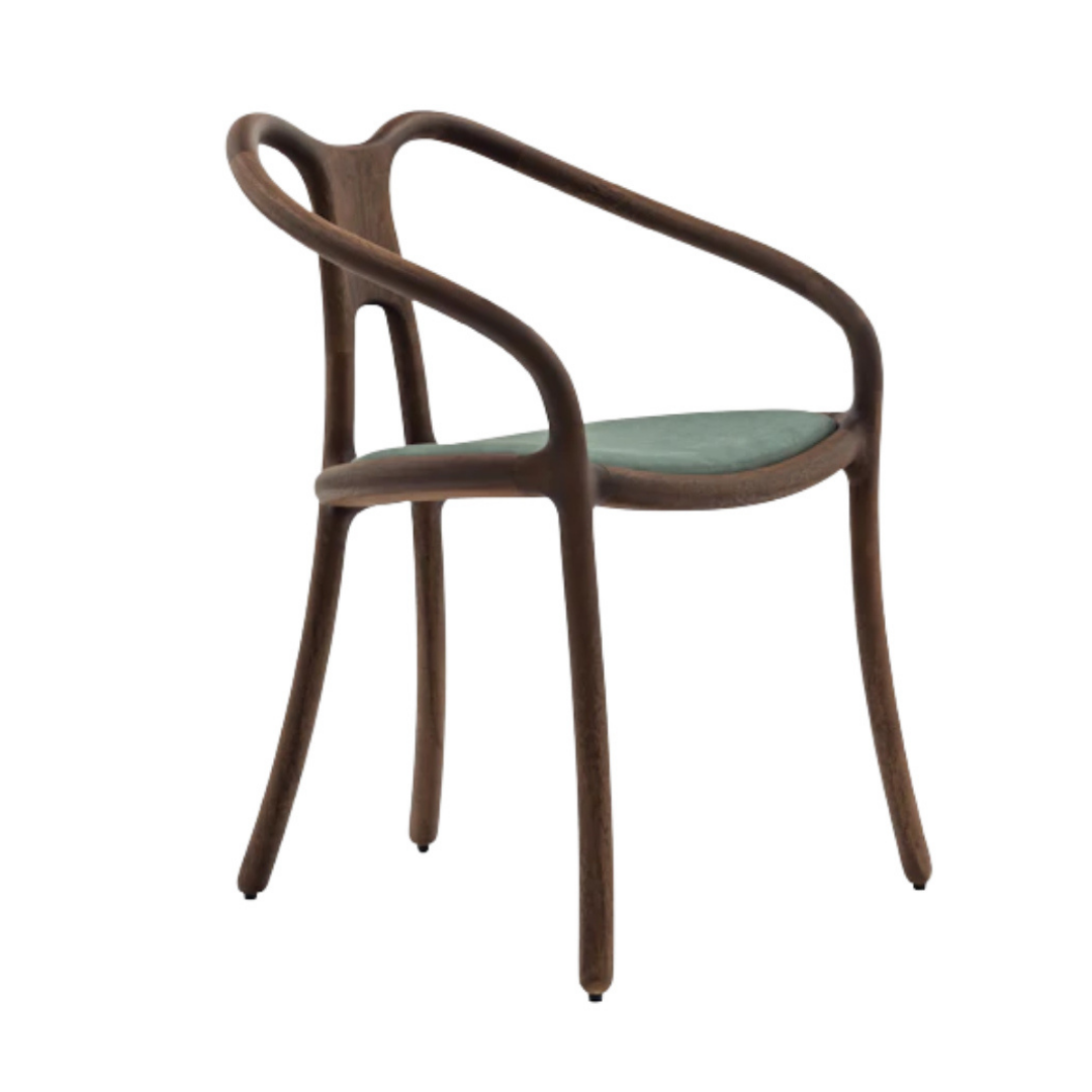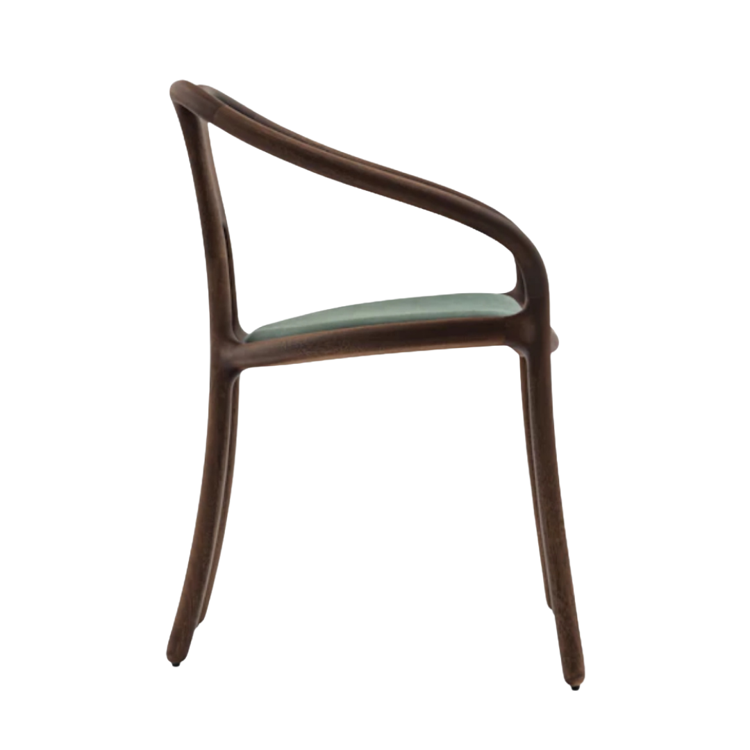 Estrutura: Madeira maciça Acabamento: Natural, textura da madeira Detalhe: Linhas fluidas, recorte CNC, design ergonômico Design: Orgânico, leve, discreto, artesanal