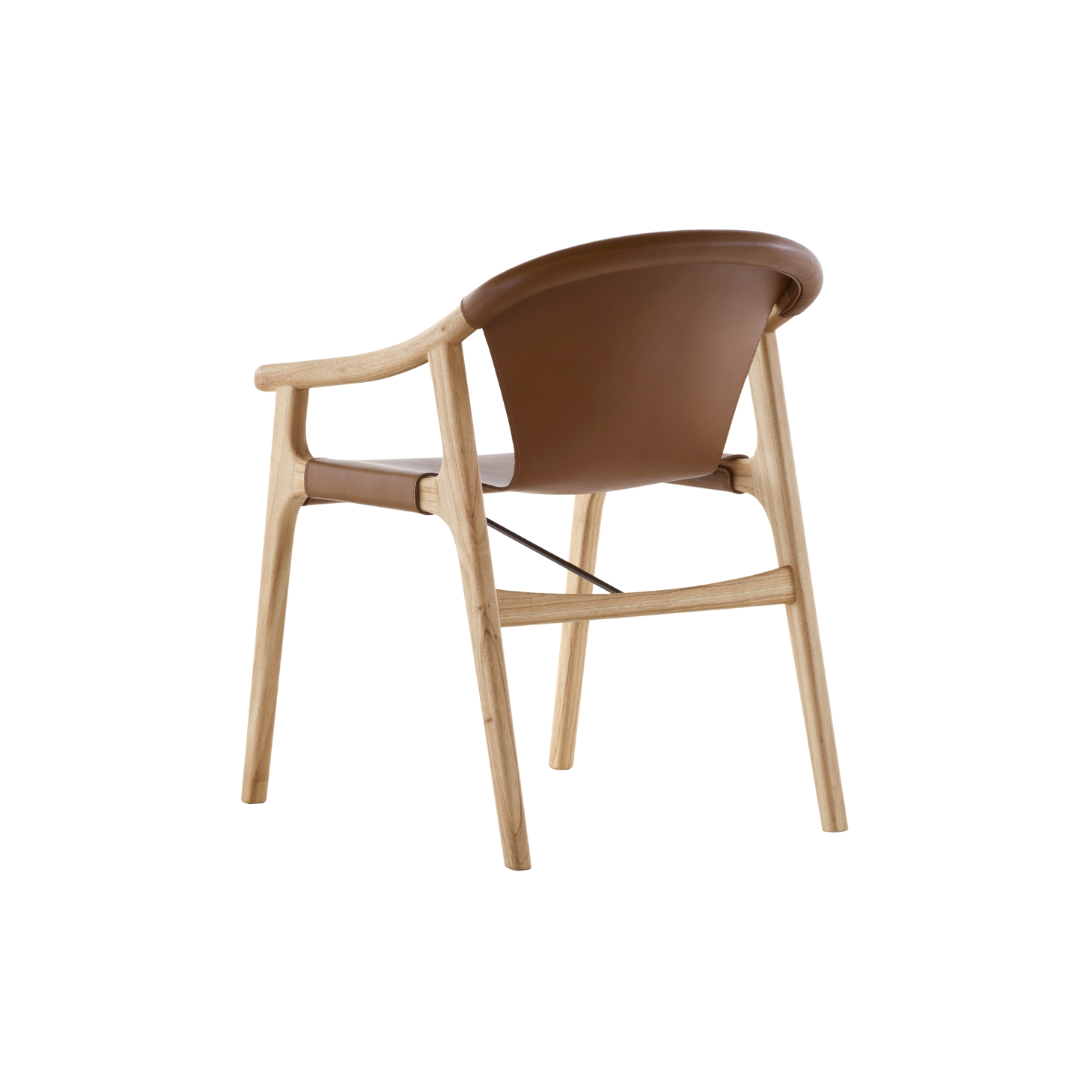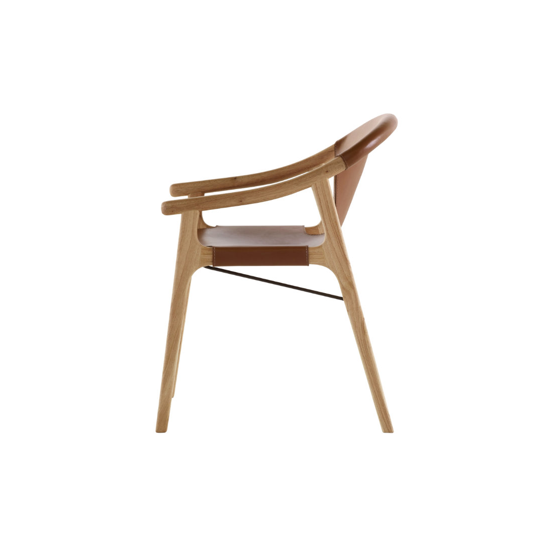 A cadeira Cuna nasce da combinação entre ergonomia e conforto, que orientam suas linhas. A estrutura em madeira usinada foi projetada para receber o assento em bolsa de couro tipo soleta, com costura aparente que remete ao modernismo brasileiro. Leve e versátil, a peça se adapta com facilidade a casas e espaços corporativos.