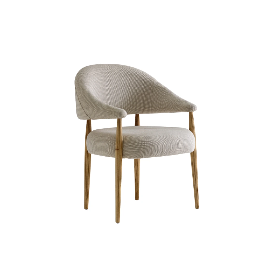 A cadeira Frisos tem design atemporal e discreto, distinguindo-se pelos pés de madeira maciça com frisos verticais que tocam suavemente os estofados do assento e do encosto. Toda a estrutura de fixação permanece oculta, resultado da tecnologia fabril empregada. Ideal para salas de jantar, a peça agrada tanto quem prefere o estilo contemporâneo quanto quem aprecia o clássico.