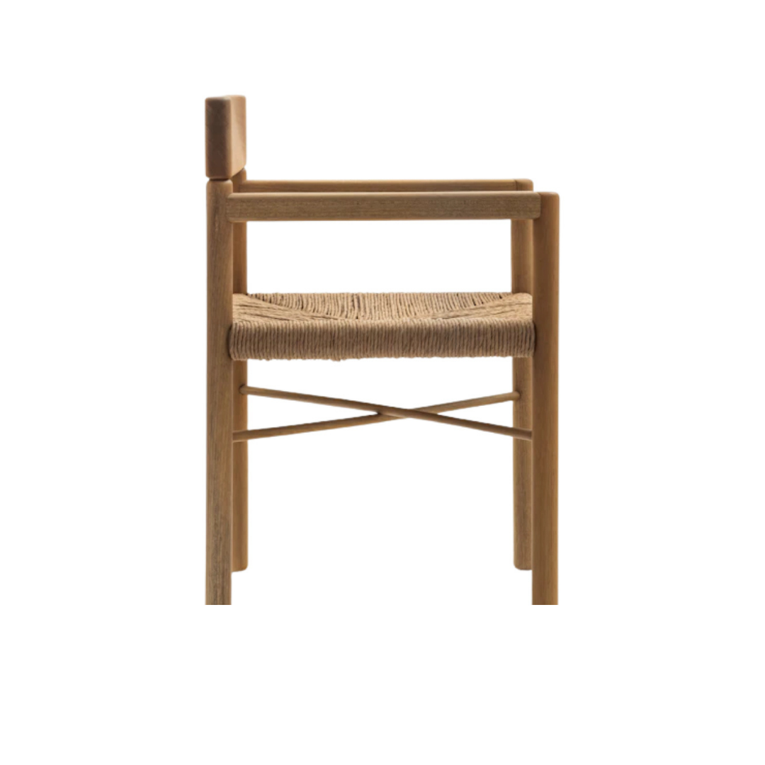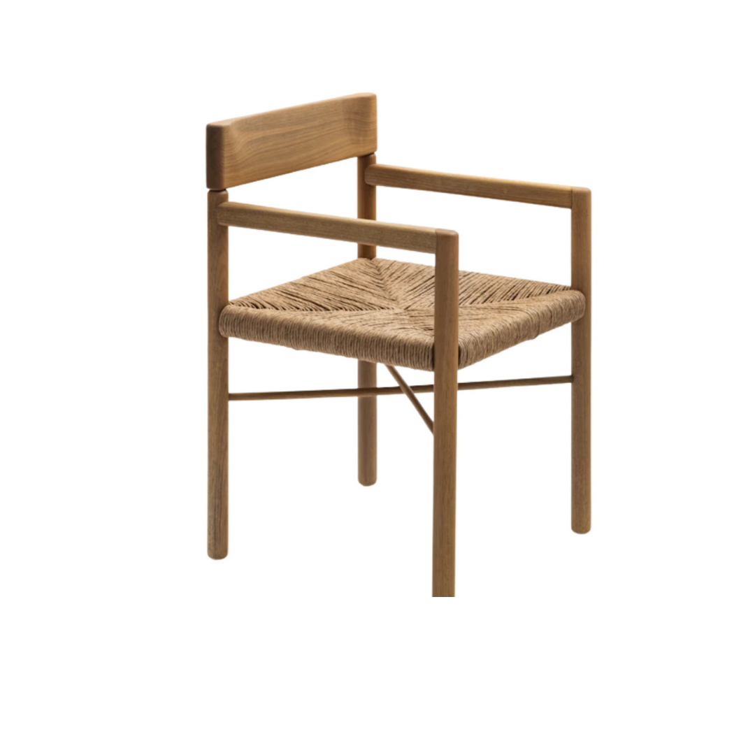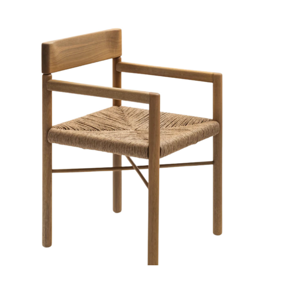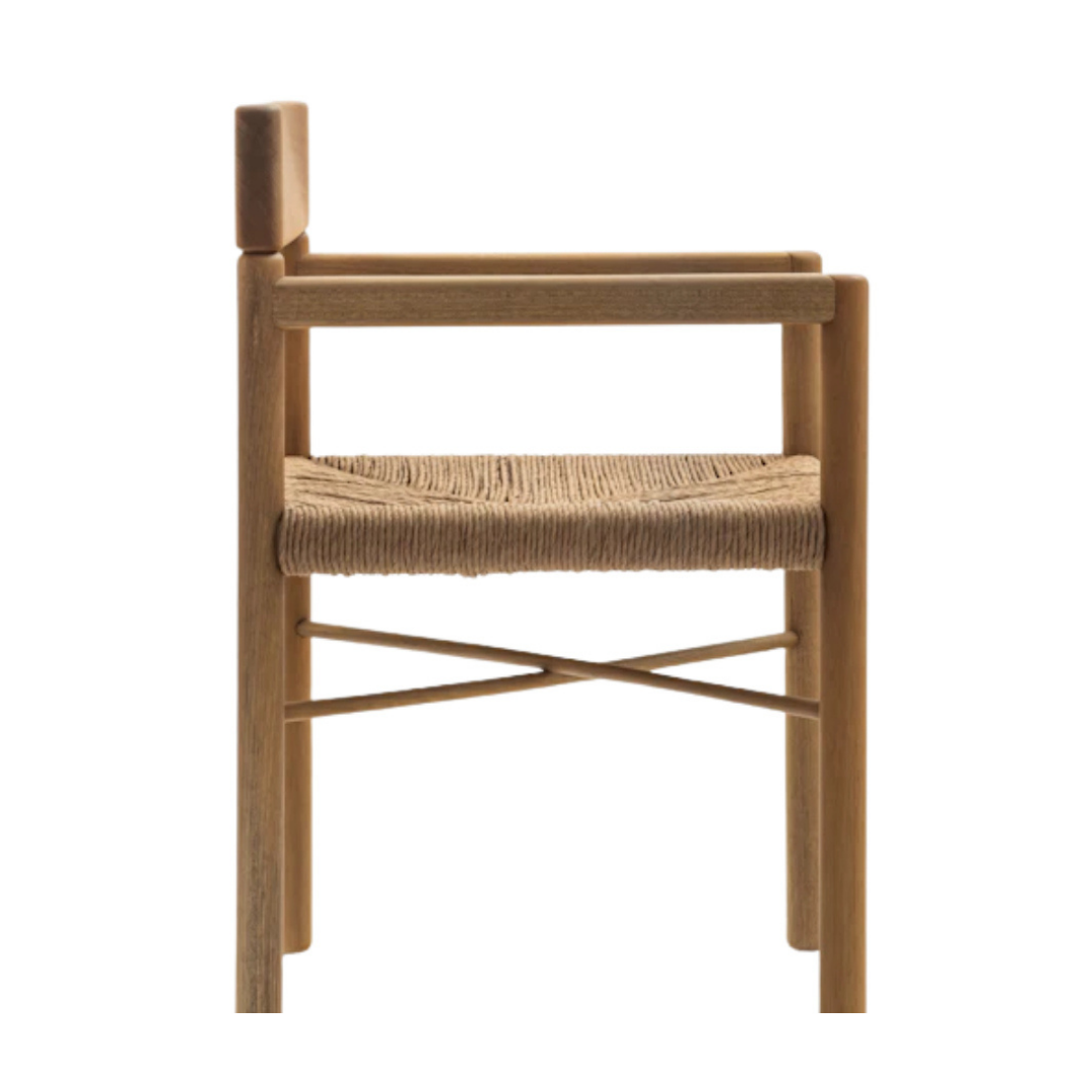 Estrutura: Madeira maciça Acabamento: Natural ou tingido Tapeçaria: Corda tramada ou couro Assento: Corda tramada ou couro Encosto: Madeira maciça Detalhe: Trama artesanal, textura natural Design: Esguio, ergonômico, sofisticado, atemporal