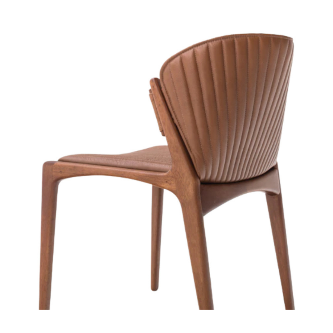 Estrutura: Madeira certificada ou laca Acabamento: Raiado nas arestas para maior durabilidade e conforto Base: Estrutura robusta e resistente Tapeçaria: Couro ou tecido Assento: Estofado Encosto: Estofado Detalhe: Disponível nas versões com e sem braço, encosto e assento unificados para design integrado Design: Atemporal e sofisticado
