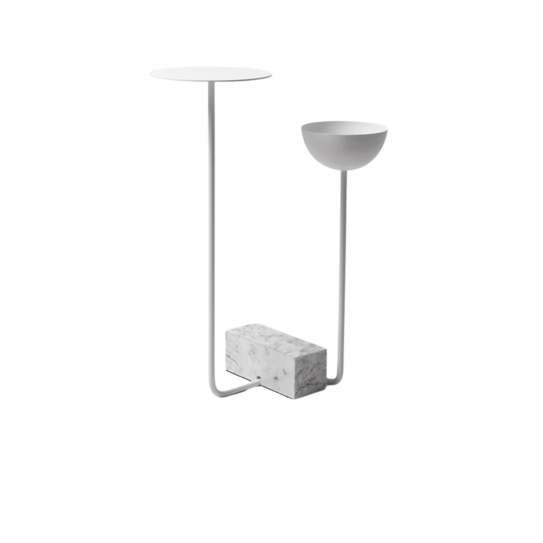 As peças da série Adobe são formadas por uma fina e contínua estrutura de metal, equilibrada por um bloco pesado de mármore, que deixa explícita a relação entre os elementos da composição, como se cada componente do produto tivesse uma ação sobre o outro. Seja em uma sala, quarto, hall ou até como display de pequenos objetos, as mesas Adobe se apresentam como pequenas esculturas funcionais, trazendo formas orgânicas para quebrar a simetria dos ambientes.