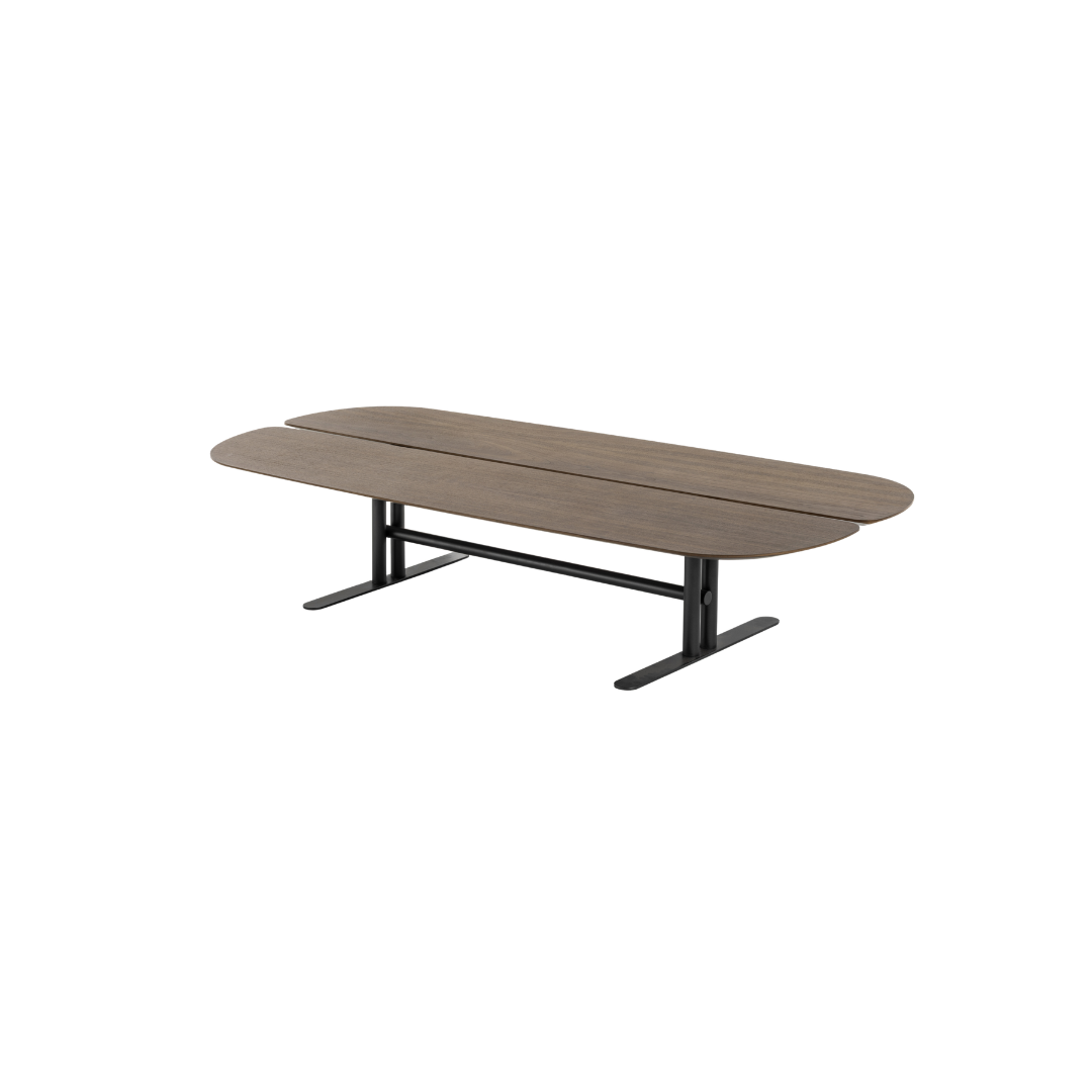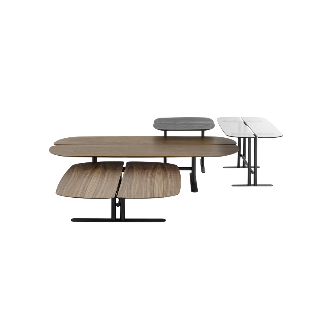 A mesa Café é inspirada no grão de café, símbolo da cultura brasileira, e integra a linha assinada pelo Giacomo Tomazzi Studio, combinando funcionalidade, leveza e versatilidade. Seu desenho traz tampos divididos em duas partes, criando uma composição equilibrada e inusitada. A base metálica em “T”, em aço carbono com pintura, garante estabilidade sem pesar no visual. Os tampos, em padrões madeirados ou vidro refletente, acrescentam refinamento. Disponível em versões de centro, lateral e apoio, em diferentes formatos e tamanhos, pode ser usada sozinha ou em conjunto, adaptando-se a diversos ambientes.