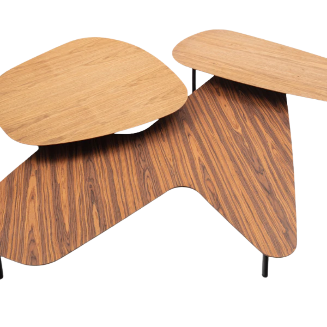 Estrutura: Aço Tampo: MDF laminado ou mármore Acabamento: Diversos acabamentos disponíveis Estrutura: Aço pintado Design: Assimétrico Detalhe: Ajustável a diferentes estilos de decoração, personalizável conforme o gosto e espaço.