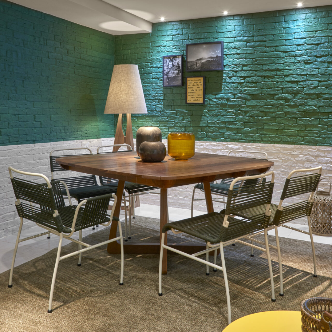 A mesa de jantar Marina integra a linha inspirada na costa brasileira e nas estruturas das embarcações. Seu desenho assume formas orgânicas e curvas marcantes, com a madeira maciça como elemento principal. Prática e de fácil manutenção, adapta-se com naturalidade a ambientes de estar, salas de jantar e áreas gourmet, compondo espaços voltados ao convívio e ao relaxamento.