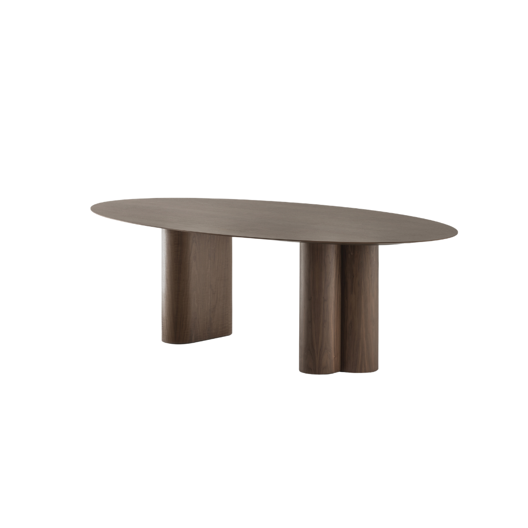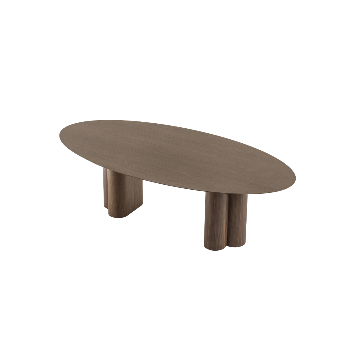 A mesa de jantar Max Elíptica se destaca pelo tampo alongado em formato elíptico, de bordas suaves, que valoriza a circulação e favorece a convivência. Sua base escultural combina volumes arredondados — um apoio de linhas curvas e três cilindros — criando um conjunto robusto e, ao mesmo tempo, visualmente leve. Com diversas opções de acabamento e desenho contemporâneo, a Max imprime presença na sala de jantar com equilíbrio e elegância.