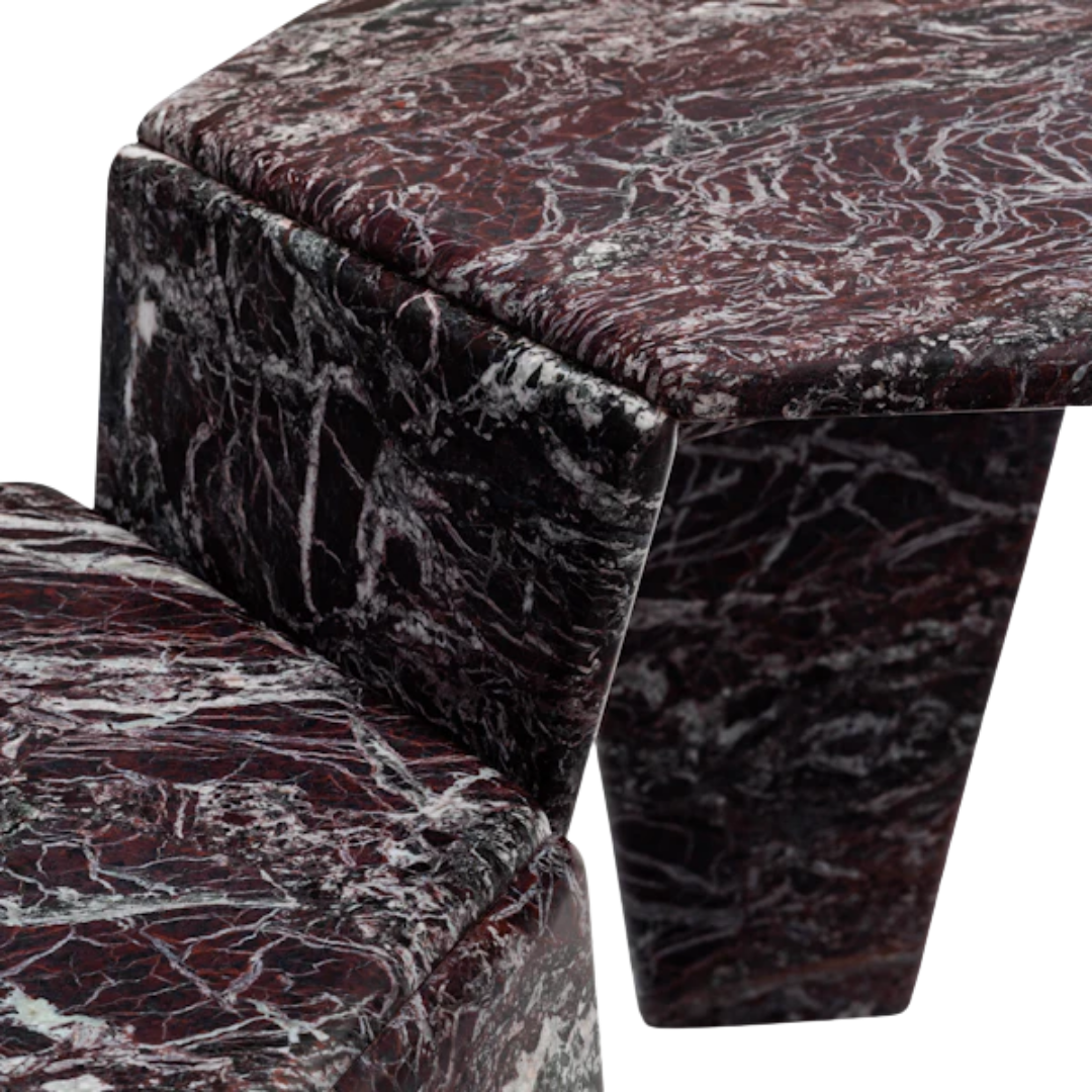 Estrutura: Mármore maciço Acabamento: Levigado Detalhe: Fixação invisível, texturas naturais Design: Funcional, escultural, sofisticado, artesanal