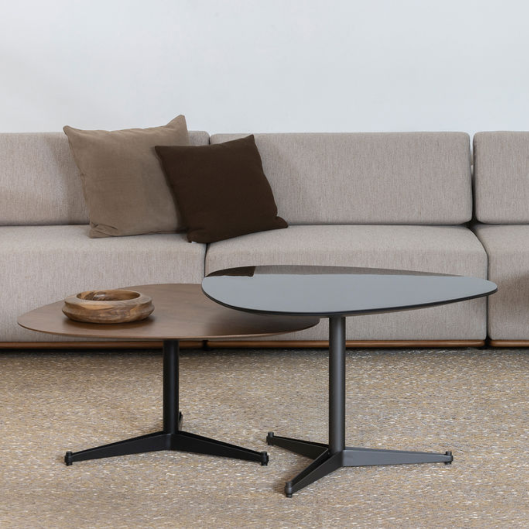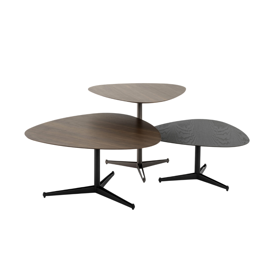 A mesa Videira é inspirada no universo dos vinhos. A árvore e as raízes da videira, árvore frutífera de onde crescem as uvas e se origina o vinho, são representadas pela estrutura da mesa e os três pés em metal. Na ponta de cada pé há um elemento que representa a rolha das garrafas, arrematando o desenho estrutural. O tampo “triangular”, por sua vez, acompanha o movimento dos pés, em um formato arredondado que cria uma referência aos barris onde o suco de uva é fermentado.