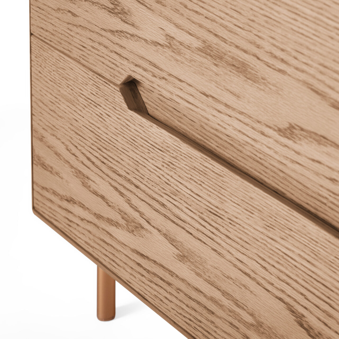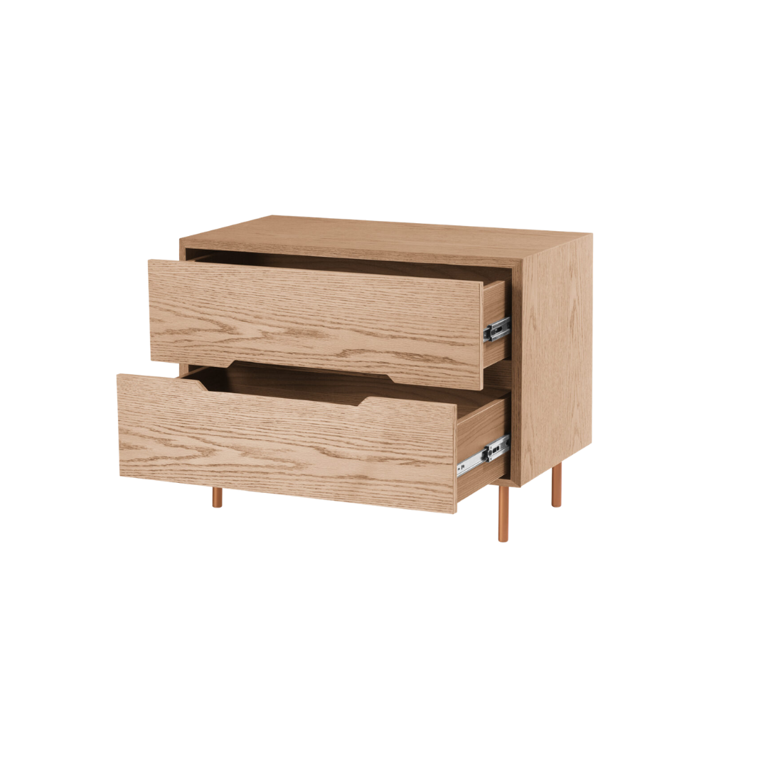 A minicômoda Face foi pensada para facilitar a organização do dia a dia, com duas gavetas amplas que acomodam objetos pequenos e médios. Versátil, pode ser usada não apenas ao lado da cama, mas também em salas de estar ou home theater. Produzida em madeira, apresenta quinas e puxador em cava chanfrados, enquanto os pés em metal acrescentam um toque contemporâneo e leve ao desenho.