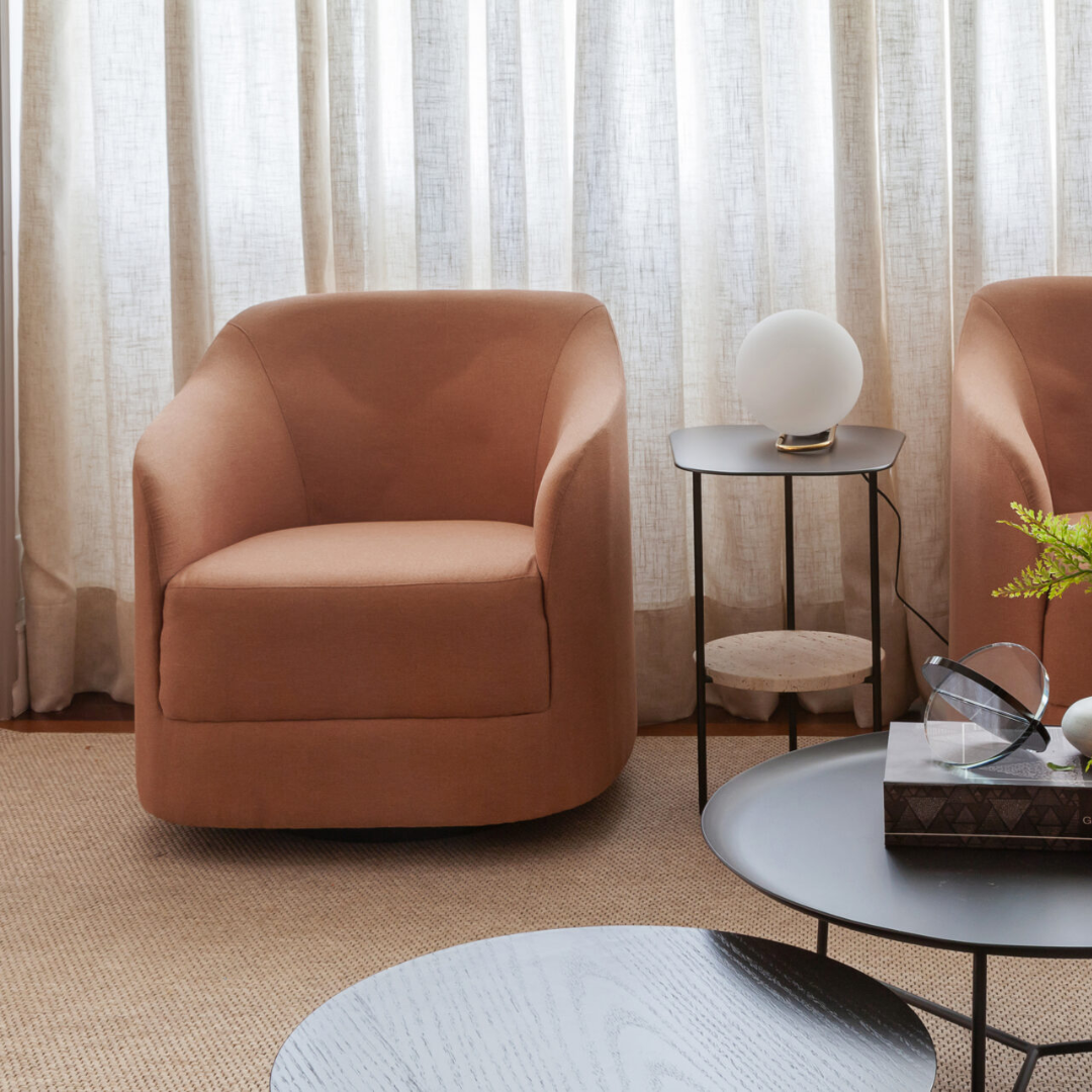 A poltrona Ninho foi pensada como um refúgio dentro de casa, compacta e acolhedora, convidando ao relaxamento e à interação. Totalmente estofada e revestida em tecido, oferece conforto e ergonomia em um desenho equilibrado e funcional. O sistema giratório amplia as possibilidades de uso, permitindo fácil adaptação a quartos, salas de estar, home cinemas e home offices, especialmente em ambientes integrados.