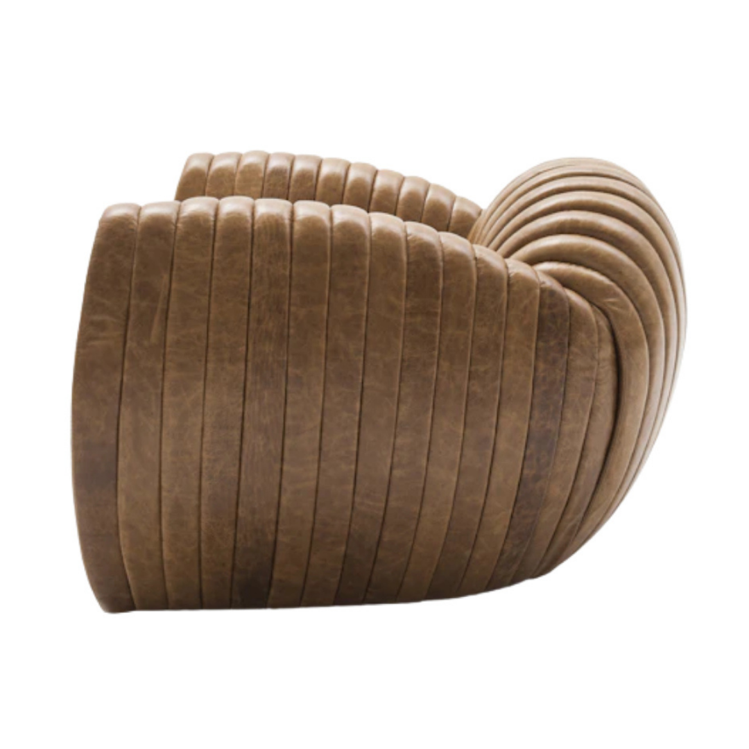 Estrutura: Polietileno rotomoldado, madeira certificada Acabamento: Recorte em gomos formato deconcha Tapeçaria: Estofados exclusivos Estudiobola Assento: Estofado Encosto: Estofado Detalhe: Enchimento com espuma sintética de várias densidades Design: Marcante, elegante, aconchegante