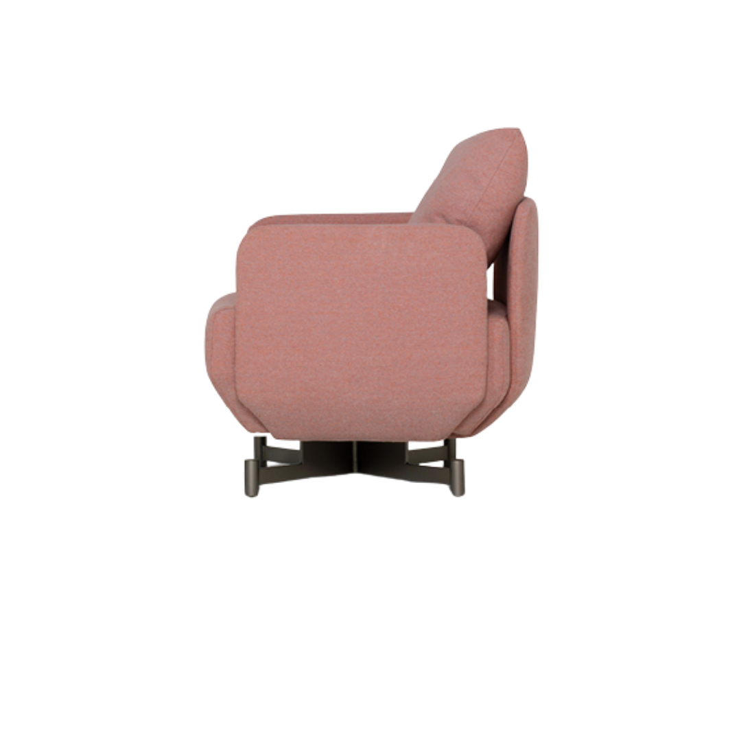 MATERIAIS Tecido ou Couro Natural Madeira Tratada HDF MDF Compensado Naval Espuma Soft Aço Carbono ACABAMENTOS Poltrona Giratória. Pés em aço carbono com pintura.
