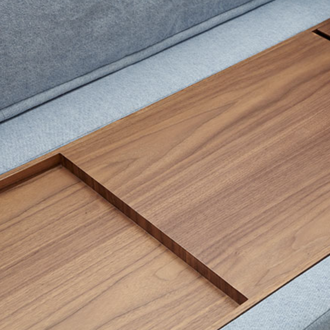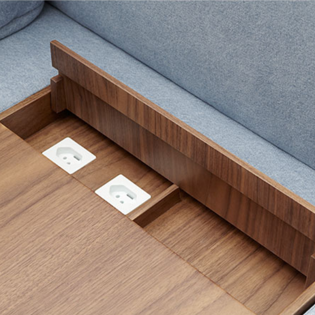 Possui um apoio opcional em madeira, com tomadas e uma luz ambiente acolhedora. Vai da sala ao quarto, da praia à cidade. Vira cama com roupa de cama padrão, perfeito pra hóspedes ou quem curte conforto total.